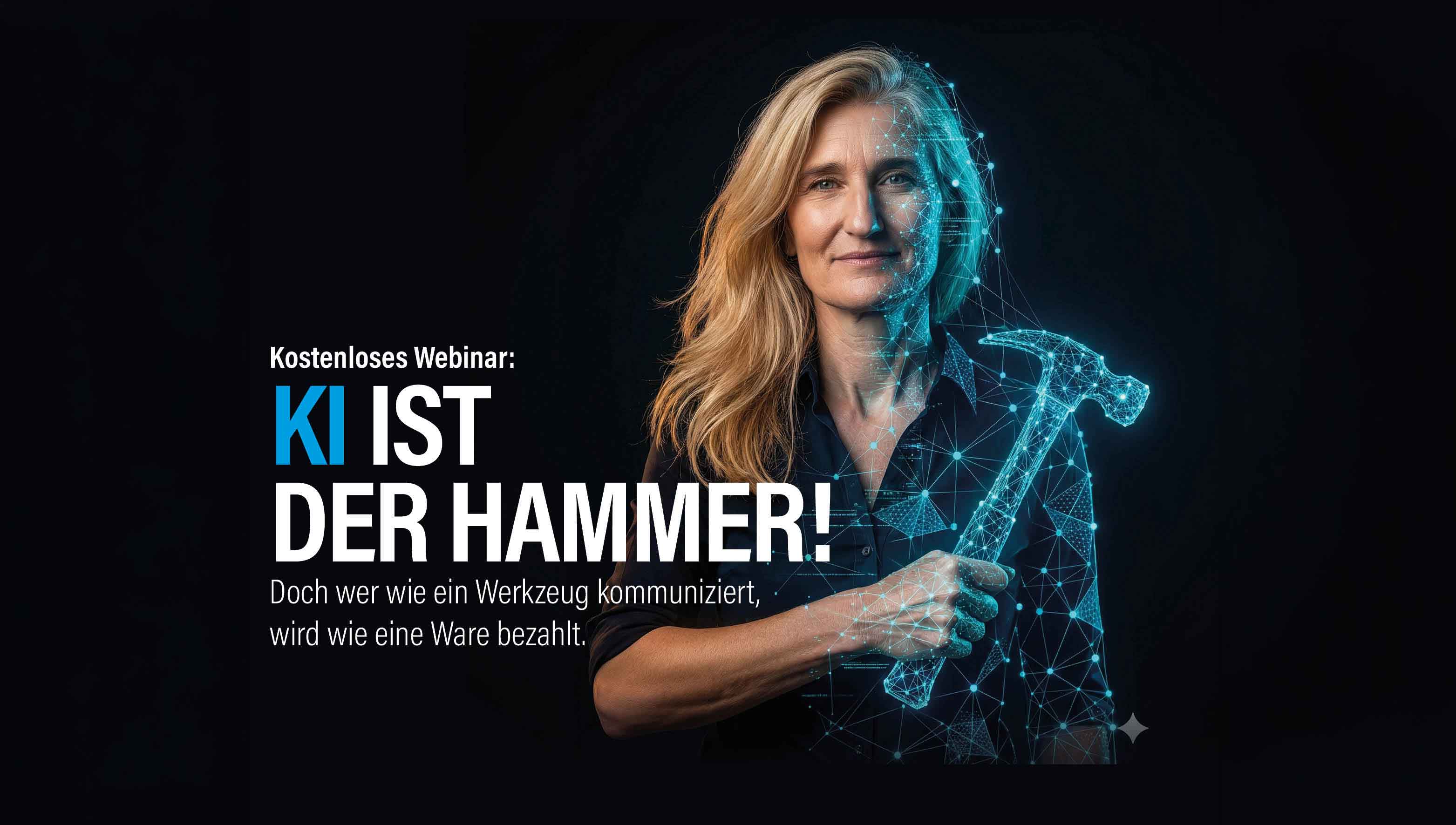 und Authentizität. Sie sieht Technologie – symbolisiert durch den „digitalen Hammer“ –